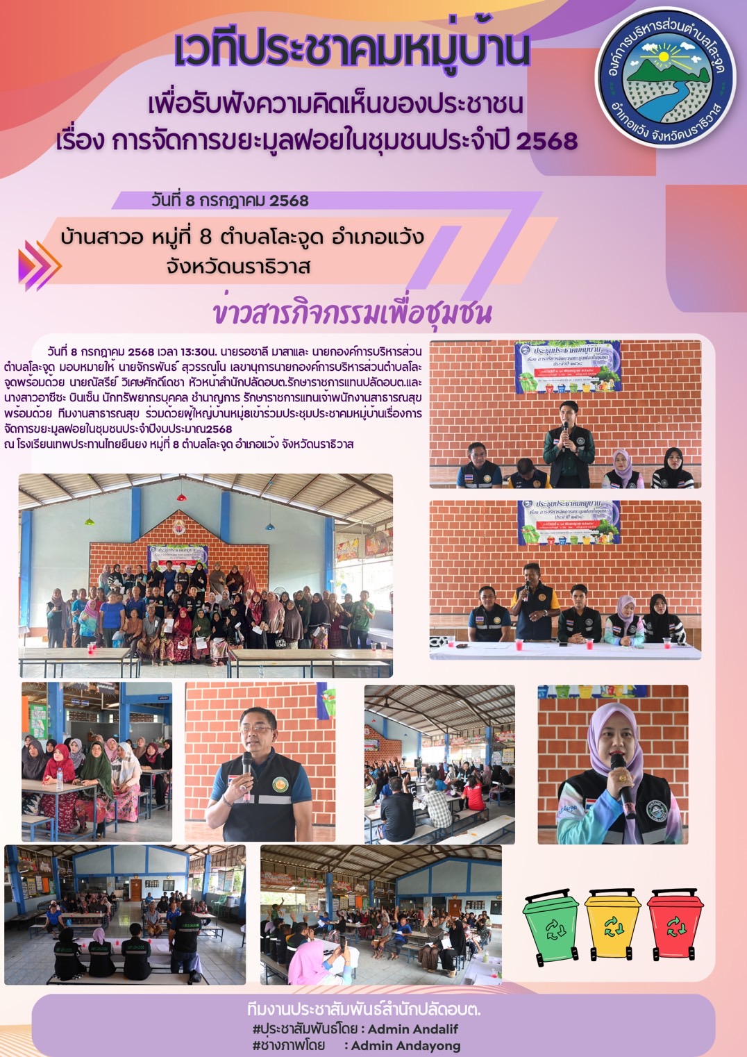 . ขอ อภัย ในความไม่สะดวก ขณะนี้เว็บไซต์องค์การบริหารส่วนตำบลโละจูด อยู่ในช่วงการปรับปรุง....ยินดีต้อนรับเข้าสู่เว็บไซต์องค์การบริหารส่วนตำบลโละจูด หมู่ที่ 2 ถนนสุขาภิบาล 2 ตำบลโละจูด อำเภอแว้ง จังหวัดนราธิวาส 96160 . โทรศัพท์ 073-586140 / 073-586130 :: ด้วยสถานการณ์การแพร่ระบาดของโรคเชื้อไวรัสโคโรนา COVID-19 ที่กำลังแพร่ระบาดอยู่ทั้งในและนอกประเทศในขณะนี้ องค์การบริหารส่วนตำบลโละจูด จึงขอเรียนชี้แจงให้พี่น้องประชาชนตำบลโละจูด ได้ทราบถึงภัยที่กำลังเกิดขึ้นในขณะนี้ โดยให้ปฏิบัติตนตามคำสั่งของทางกระทรวงสาธารณสุข และคำสั่งของจังหวัดนราธิวาส อย่างเคร่งครัด และเพื่อให้ได้รับข้อมูลข่าวสารที่เป็นประโยชน์ องค์การบริหารส่วนตำบลโละจูด จึงขอให้พี่น้องประชาชนตำบลโละจูด ได้ติดตามข่าวสารจากทางหน่วยงานภาครัฐ หากมีข้อสงสัยติดต่อสอบถามได้ที่ ฝ่ายประชาสัมพันธ์ องค์การบริหารส่วนตำบลโละจูด (ในวันและเวลาราชการ) .