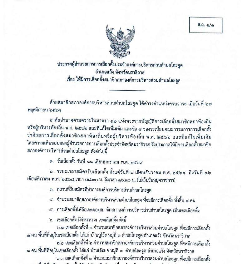 ประกาศรับสมัครสมาชิกสภา องค์การบริหารส่วนตำบลโละจูด เผยแพร่เมื่อ: 02 ธันวาคม 2568 เขียนโดย ไฟซอล มะมิงซี หมวด: ข่าวประชาสัมพันธ์ ดาวน์โหลด